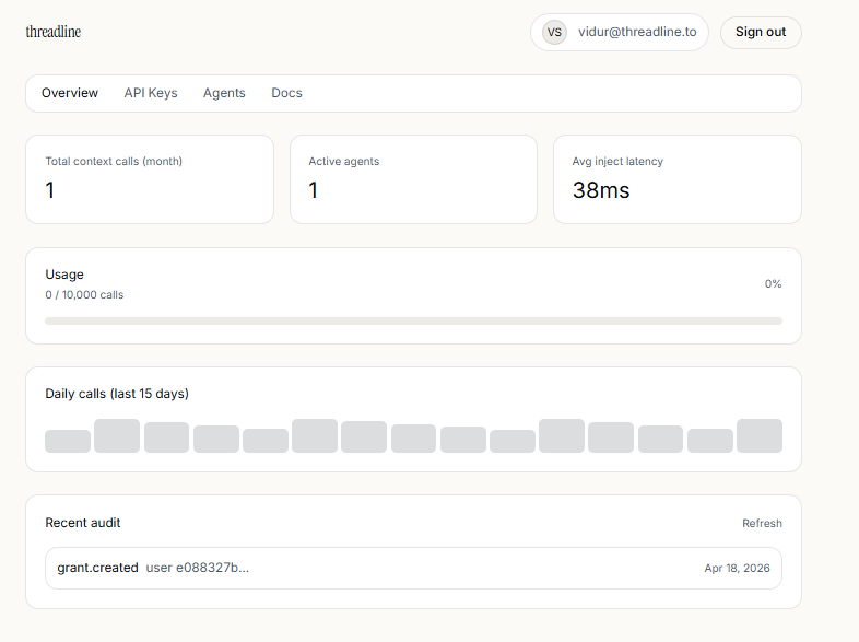 const { injectedPrompt } = await tl.inject(userId, basePrompt)await tl.update({ userId, userMessage, agentResponse })Step 06 · Monitor from dashboard